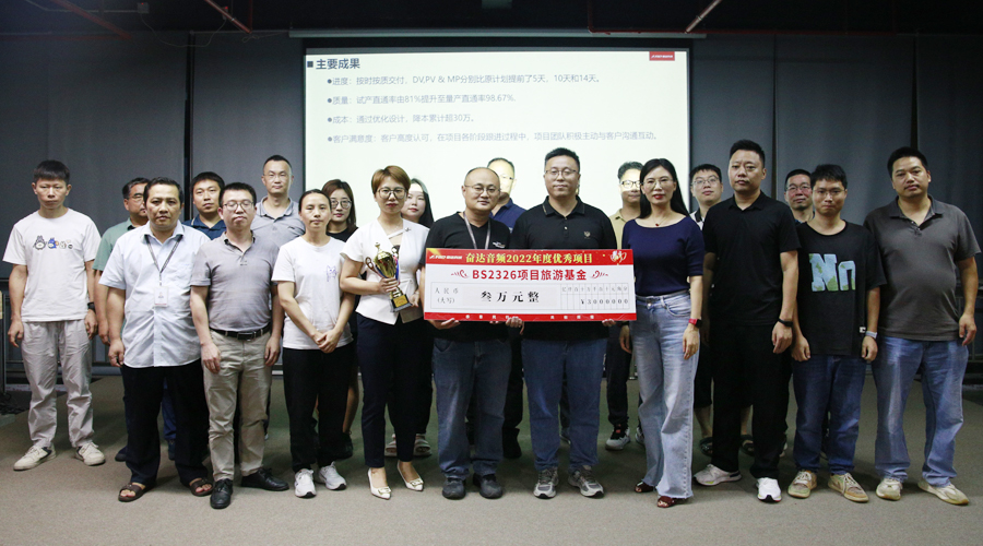 据悉,本次评选分别从项目难度系数、市场贡献率、客户满意度、品质达成率、生产达成率、成本达成率、计划达成率、费用达成率、技术达成率、专利贡献率、流程符合率和人才建设率等12个考核指标进行考量评选,共评选出4个获奖项目。